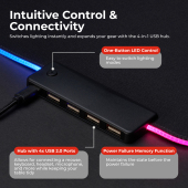 Providing smooth and accurate mouse control, the MP06-6-02 RGB Gaming Mouse Pad will bring you the ultimate gaming experience. It features a 4-in-1 additional USB hub that allows you to connect a mouse, keyboard, headset, microphone, and more while keeping your table tidy and organized. The anti-slip rubber base can make the pad remain firmly in place. The water-resistant design effectively prevents damage from liquid spillage. With RGB lighting effects, the mouse pad creates an immersive gaming atmosphere. You can easily switch the lighting modes with a built-in button.