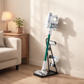 With a freestanding design, the HAB-505 provides a perfect solution to store most vacuums and accessories without mounting or drilling holes into walls. Multiple holders store and organize various vacuum attachments. A solid base with a protective bar provides stability and ample storage space. A handle rest with a soft EVA pad prevents scratches and ensures stability.