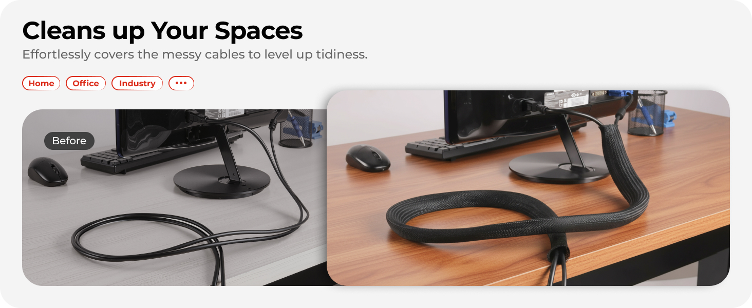 • Cuttable Design: fits your specific needs or used end-to-end for precision cable coverage