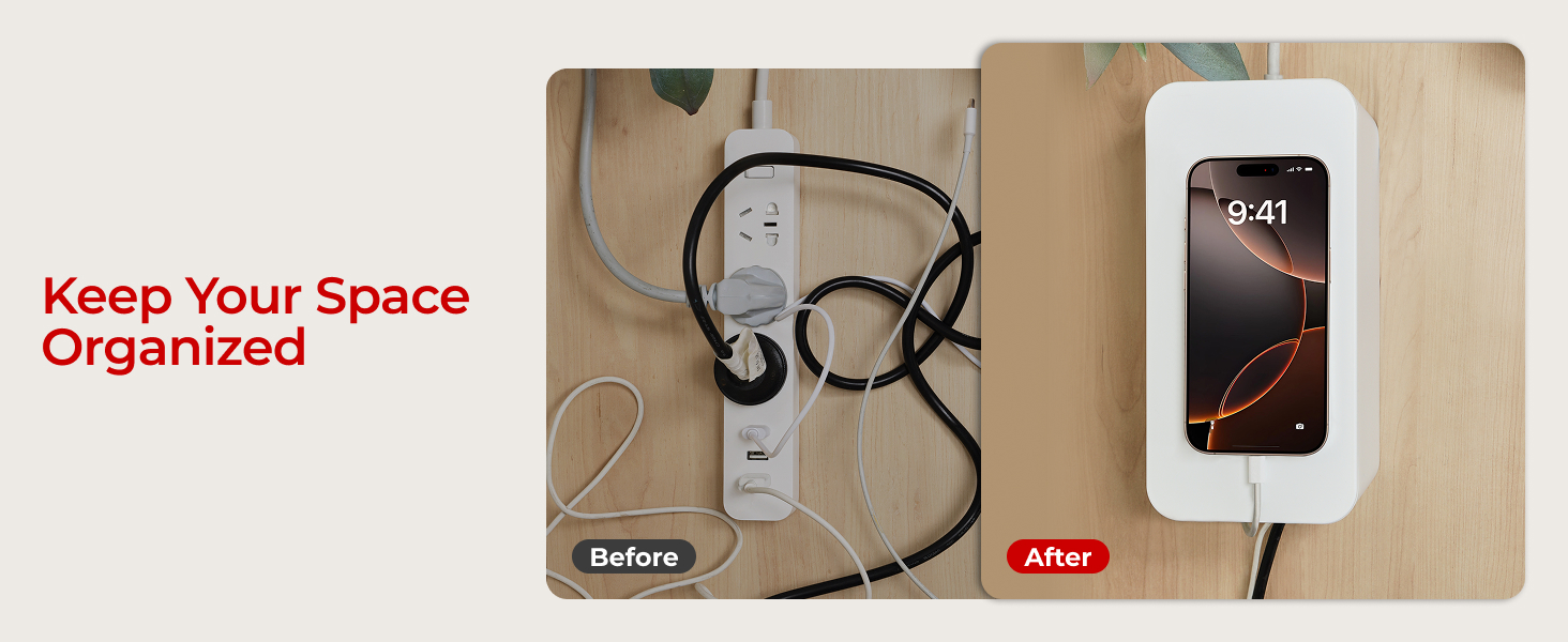 Does your power strips and cables look like a pile of spaghetti? Cable management box is a perfect storage solution for keeping your space tidy and neat. Simply drop the power strips with everything, then close the lid to hide messy cables and protect them from water and dust. Go from tangle to tidy now!