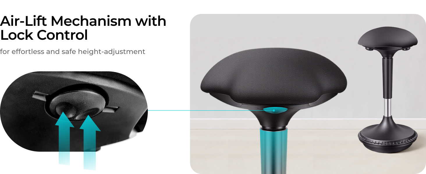 Air-Lift Piston Mechanism: for quick seat-height adjustment while seated