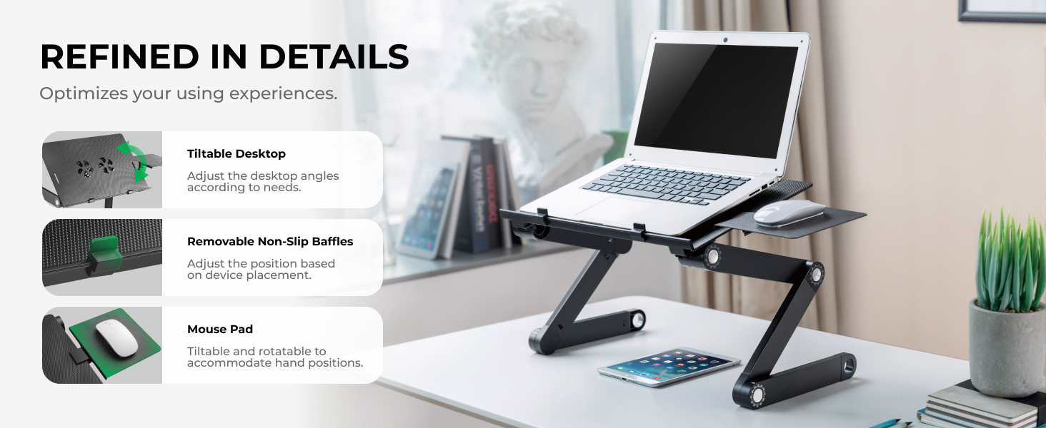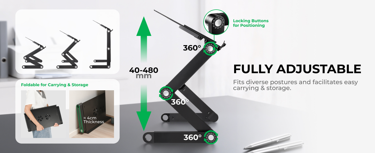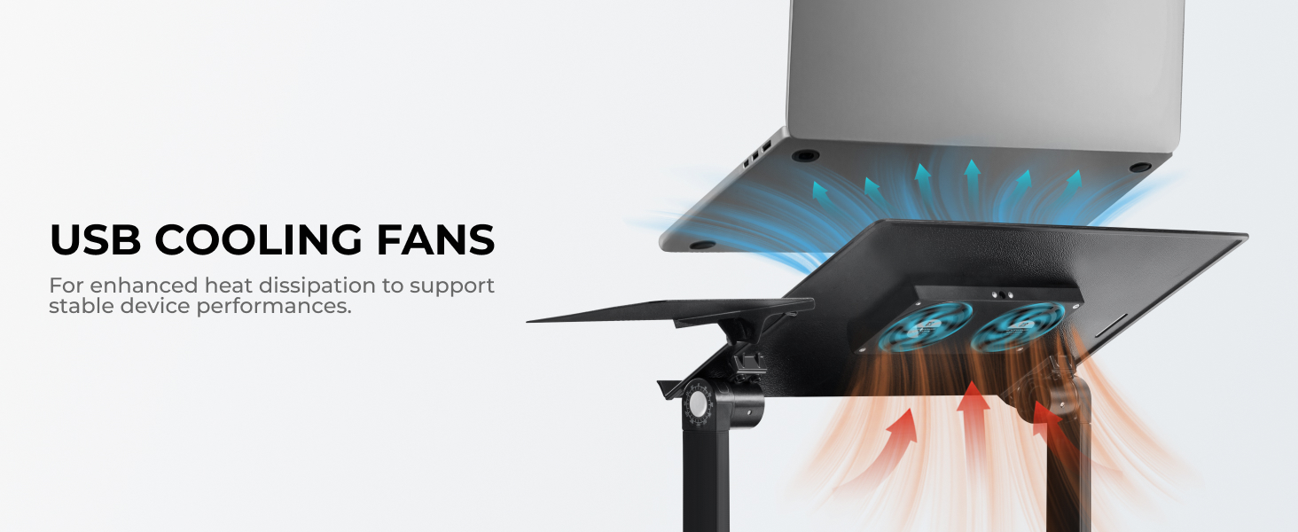 Height Adjustable Ventilated Laptop Desk with Mouse Pad Side Mount & Cooling Fan