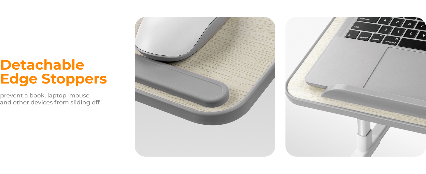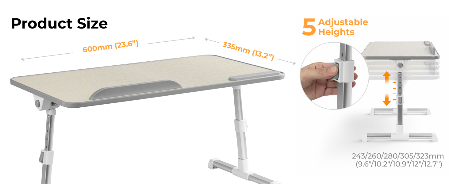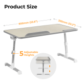 Model LPD01-7 is a Multi-Purpose Adjustable Laptop Desk which can be used as a table for bed, a laptop standing desk or a table for kids. The 5 adjustable heights and 37° tilting range accommdate to different users and meet different demands including using a laptop or reading. The upgraded snap-in buttons also allow for quicker and easier height and angle adjustment compared to most similar products incorporating knob adjustment. Last but not least, the folding design is perfect for storage-users can place it under sofa, bed, or...anywhere!