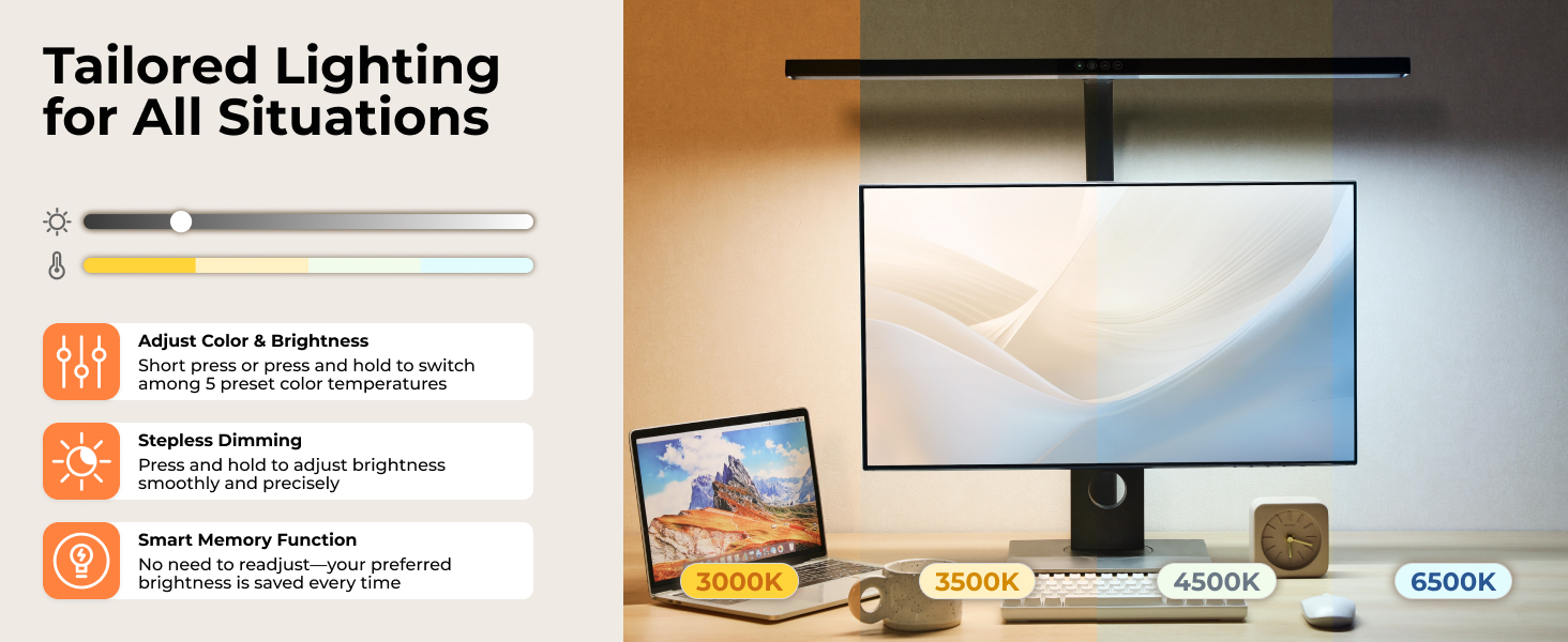 Stepless Brightness Dimmer: finds the right light intensity for your task and preference with ease -