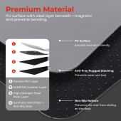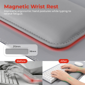 Upgrade your workspace with a smooth, large desk pad designed for comfort and versatility. The detachable magnetic wrist rest provides ergonomic support exactly where you need it, while premium multi-layer materials ensure durability and stability. Water-resistant and easy to maintain, this desk pad fits perfectly on both flat and tilted desktops, making it ideal for work, gaming, and creative setups.