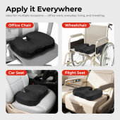 This seat cushion provides relief for lower back pain, tailbone, sciatica, pelvic pain, prostate, etc. It's a perfect cushion for wheelchair, office chair, car seat, general automotive, patio chair, dining chair, truck seat, airplane seat, stadium seat or even a flat surface and yoga!