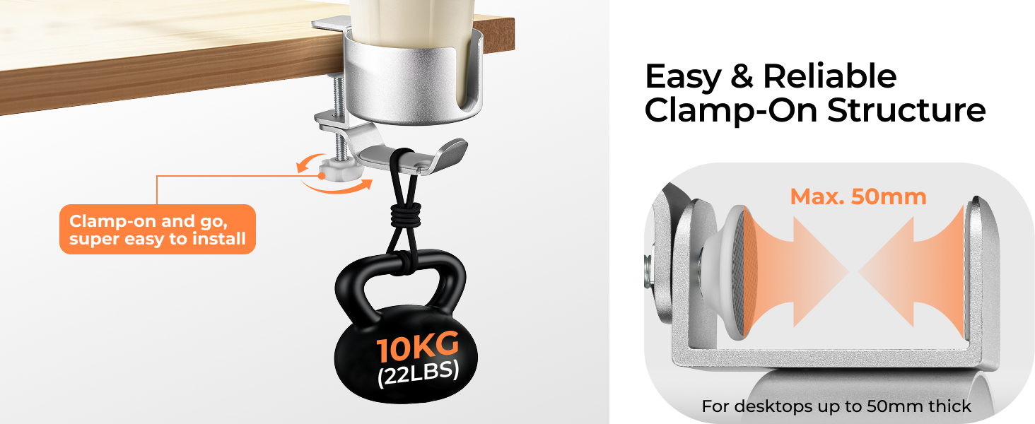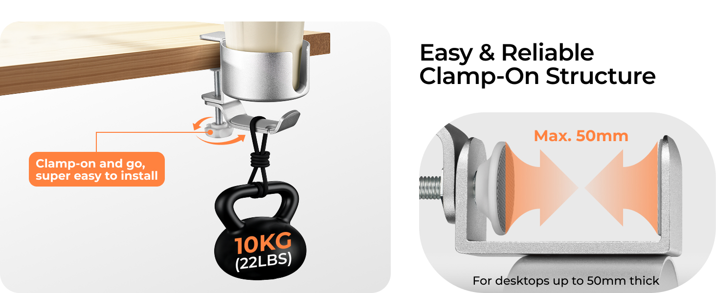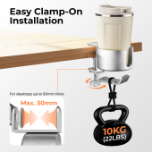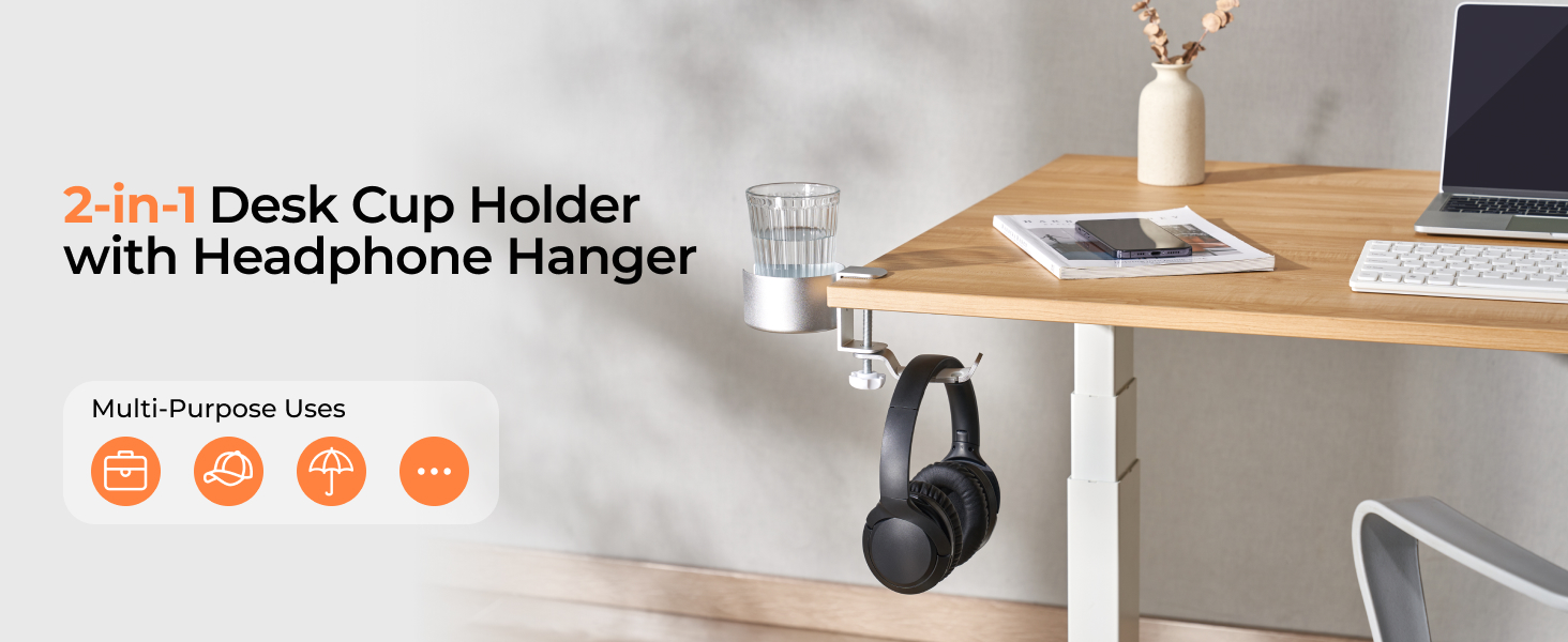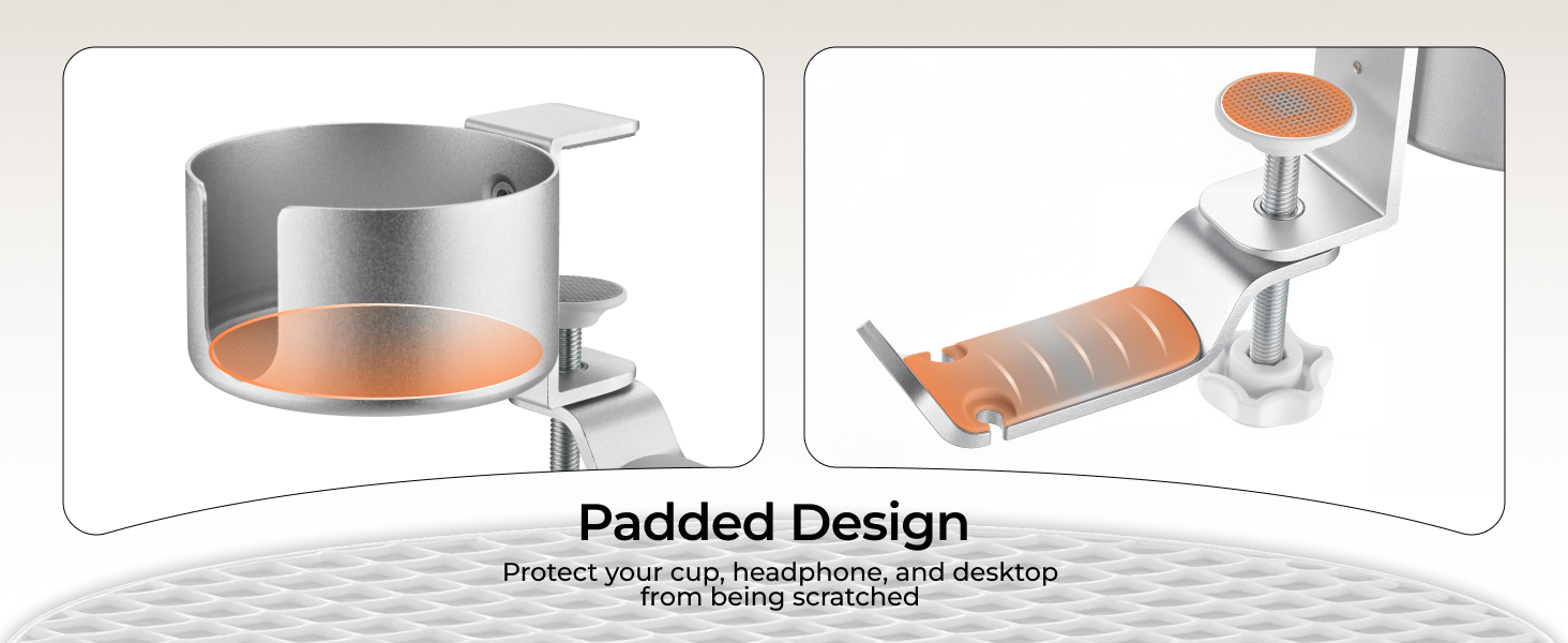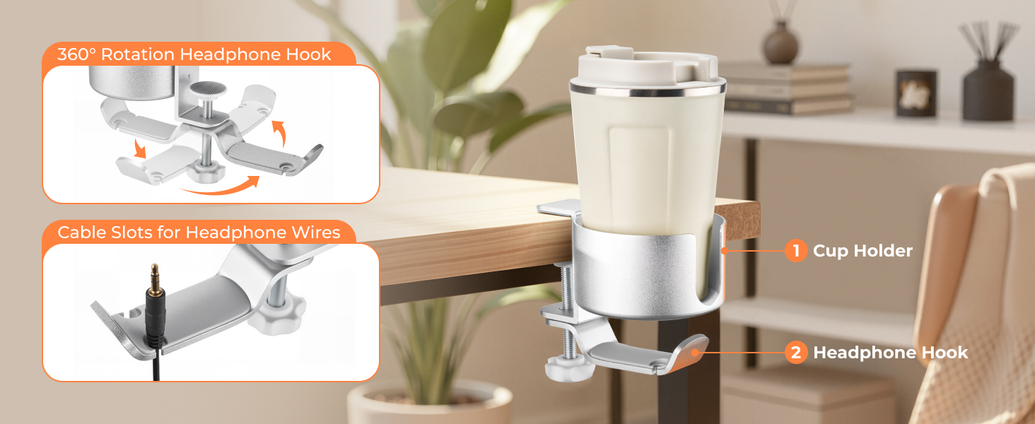 Experience our multi-purpose use clamp-on holder, which is suitable to hang headphones, bags, hats, umbrellas and more to free up desktop space. The 360° rotatable hook facilitates easy access and convenient storage. The lip design with soft pads protects the items from falls and scratches. The cable slots organize the wires for a clean look.