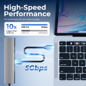 Worry about the inadequacy of the charging or interface ports of a USB C laptop? Without further ado, USB05-2 is a perfect solution. Designed with 4 USB 3.0 ports, USB05-2 offers a stable connection and increases productivity of devices by expanding the female USB type-A port to multiple possibilities of connectivity. Keep the laptops charging while still providing power to each external device attached. Extensive compatibility accommodates most USB-A devices such as laptops, printers, keyboards and more. Quality aluminum alloy housing ensures fast heat dissipation and stable performance. Extremely compact and light body makes the hubs convenient to carry and use anywhere.