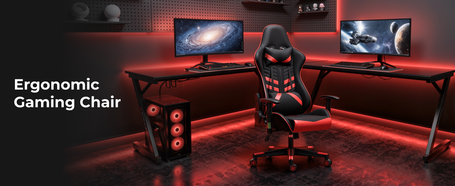 Gaming Chair with Headrest and Lumbar Support