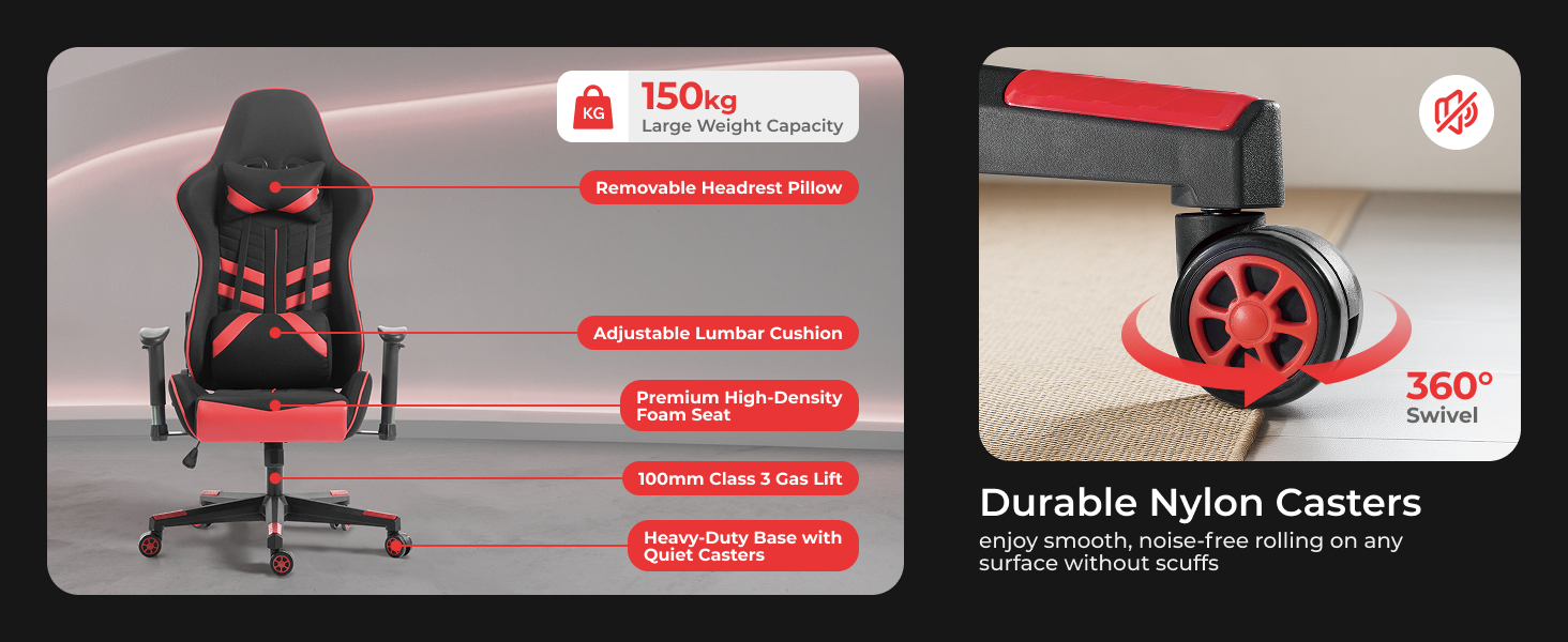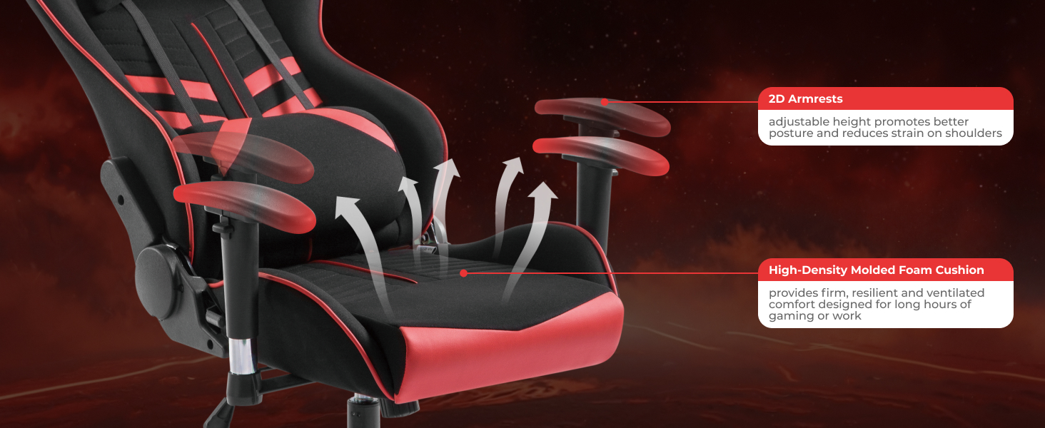 This best-in-class gaming chair has the comfort and features you need for long-term gaming sessions! Compact high-quality steel frame ensures longer life and durable function. The seat cushion combines to keep the most serious player in the game! Time to get your game on in style!