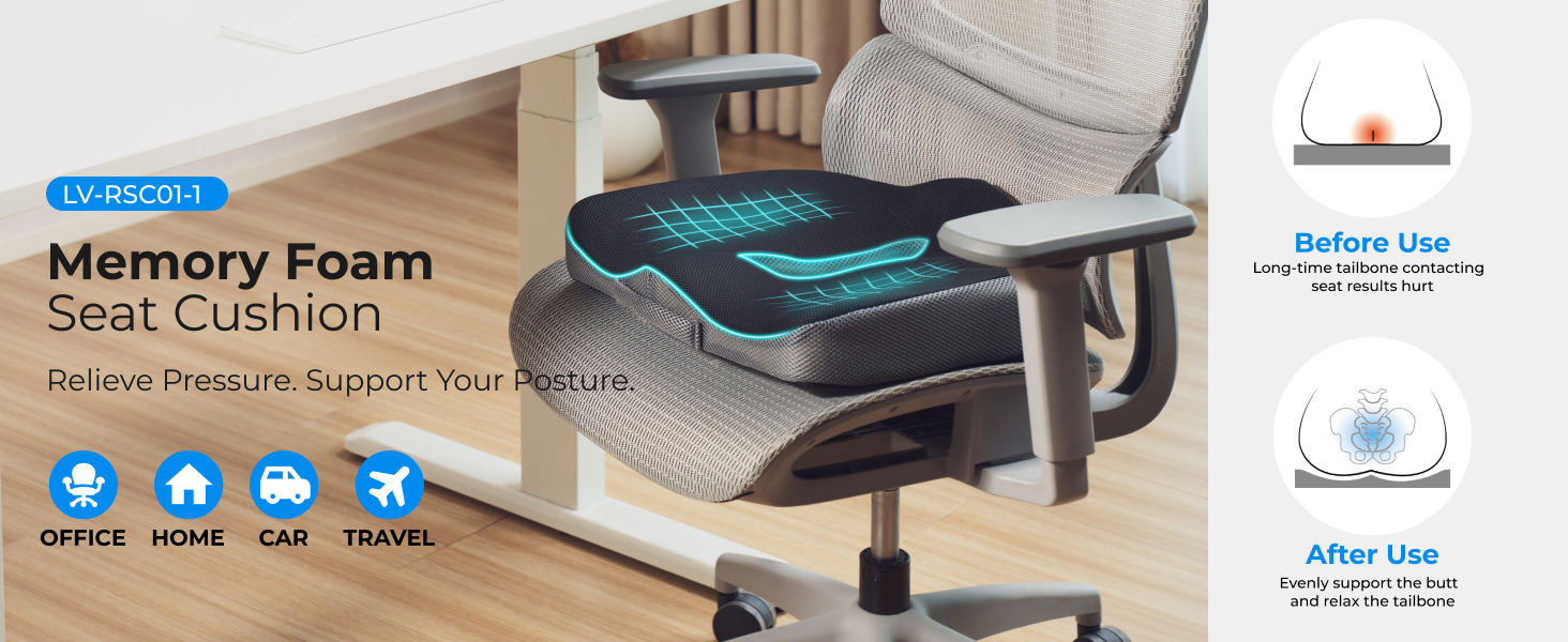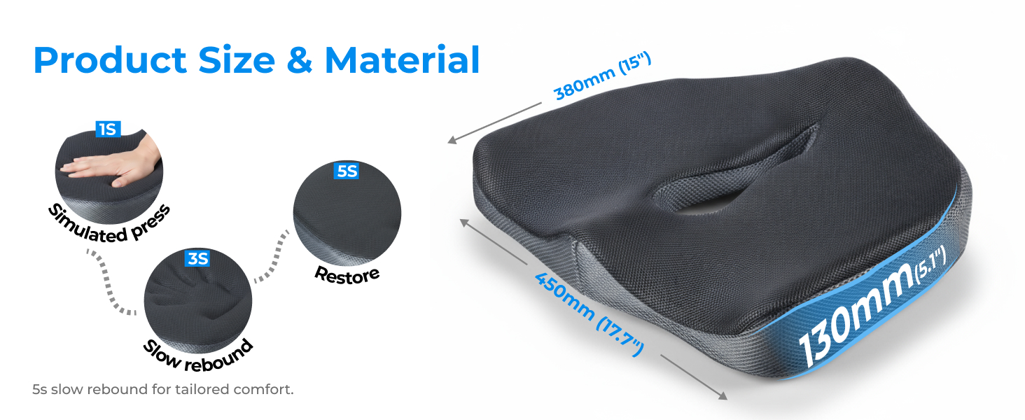 Orthopedic Tailbone Memory Foam Seat Cushion with Anti-Slip Bottom