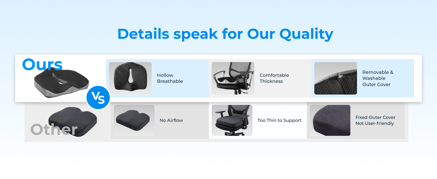 Premium Quality Foam: offers an extremely soft and comfortable sitting experience and with no chemical smell -
