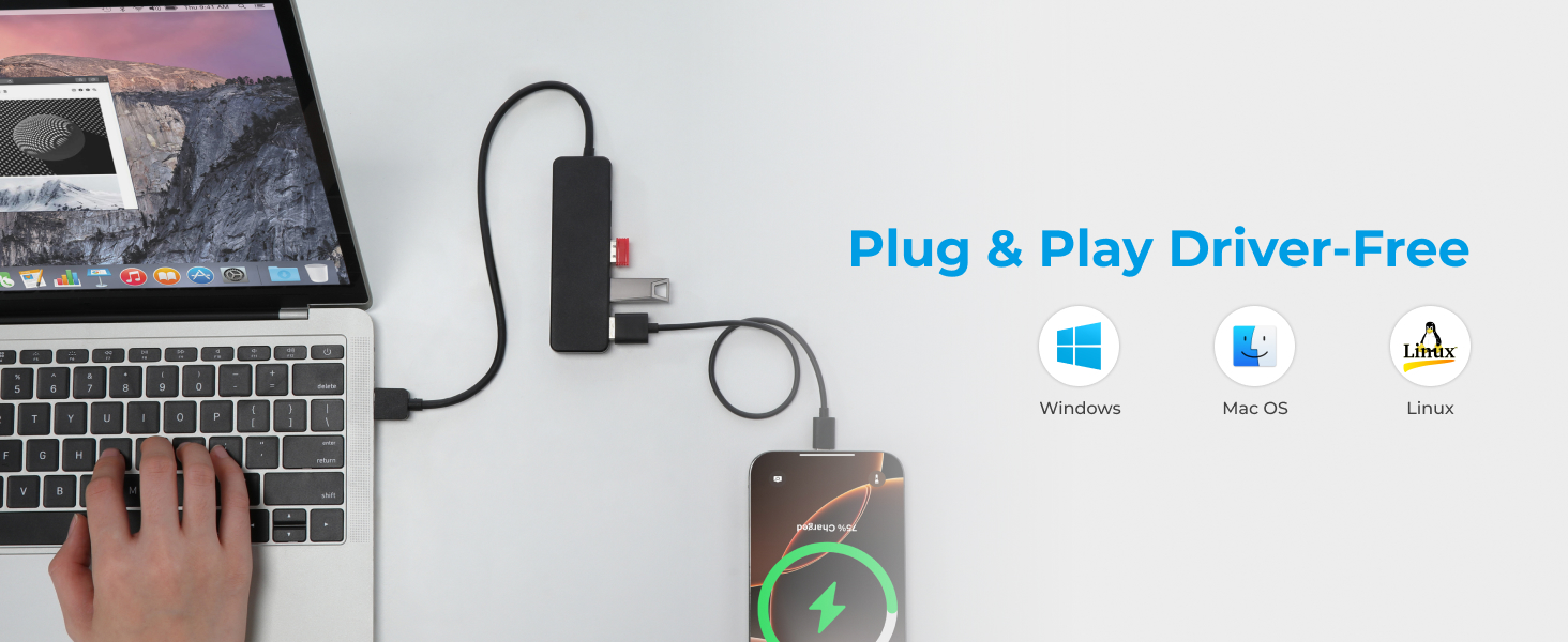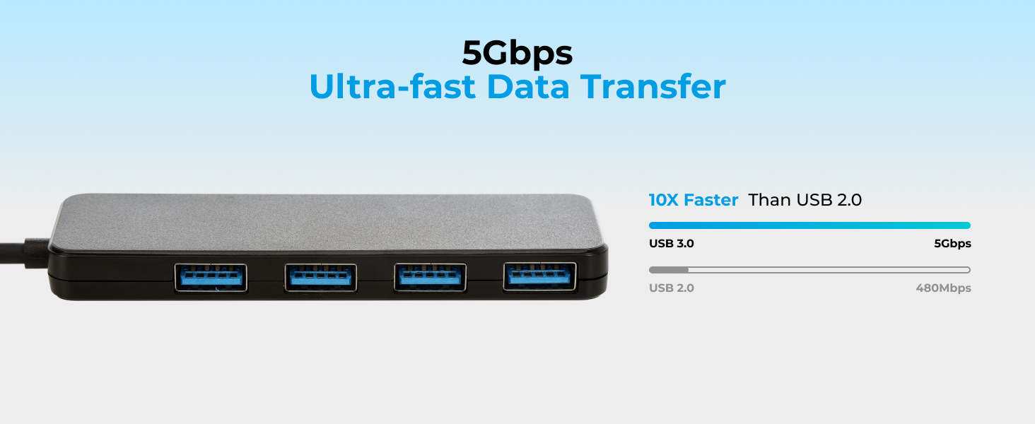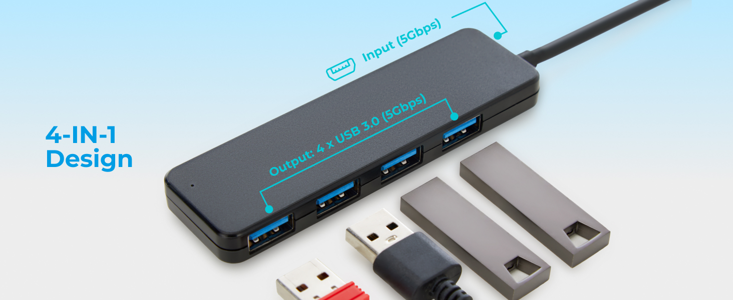 This 4-in-1 USB Hub makes connecting your devices easier than ever. With its smart 4-in-1 design, you can charge and connect multiple devices at the same time—perfect for work, travel, or home use. Featuring high-speed USB 3.0 technology, it delivers data transfer speeds of up to 5Gbps, making file transfers up to 10 times faster than USB 2.0. Simply plug and play—no drivers required—so you can instantly browse and edit files from your flash drive. Designed with smooth rounded edges for a comfortable touch, this compact and lightweight hub fits easily into your bag, making it the perfect everyday tech companion.